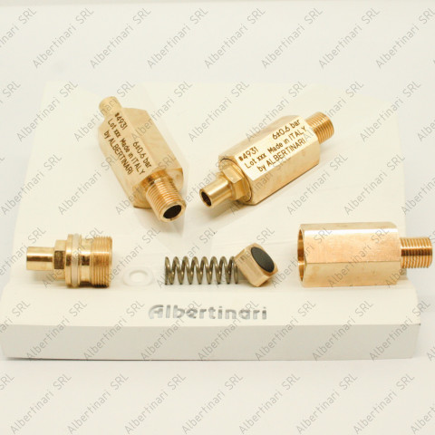 Descrizione: safety valve 1/8 Gas male and hose silicon connection pre-calibrated LEAD FREE