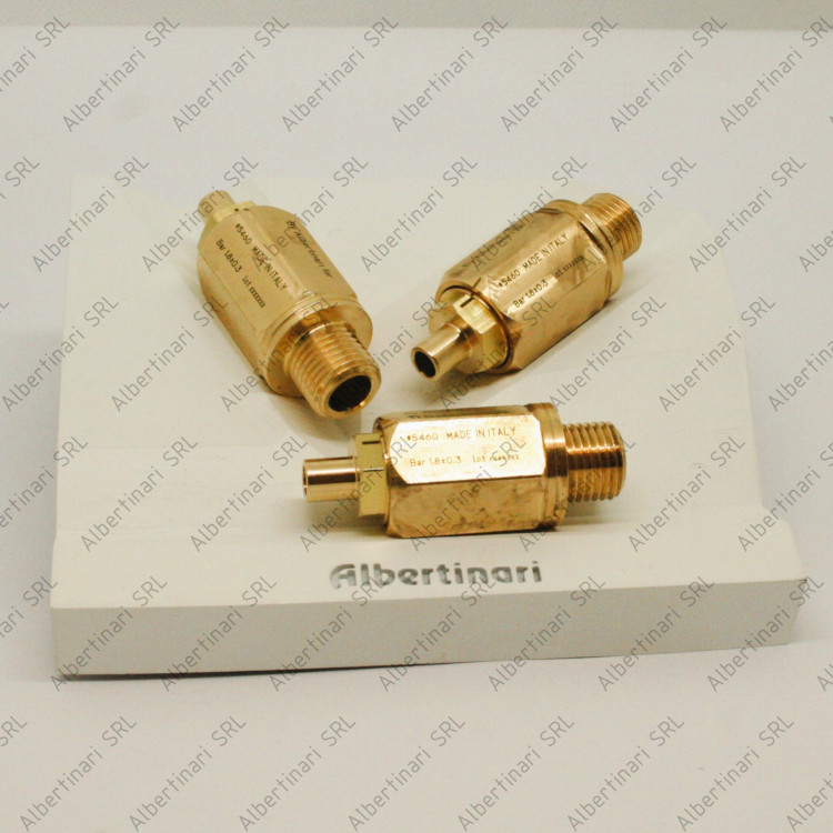 Descrizione: safety valve 1/4 Gas male and hose silicon connection pre-calibrated LEAD FREE